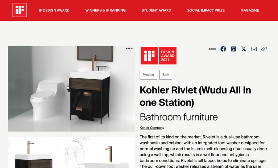 KOHLER’s istinja urinal is a thoughtful and elegant solution to the Muslim’s obligatory cleansing ritual for men’s private parts after using the toilet. Unlike conventional urinals that have dirty or rusty pipes with a weak trickle of flush water, the Struktura Hygiene Urinal has a dedicated spout to ensure a good supply of fresh and clean water at just the right pressure. In addition, a special cover helps preventing splashing and increasing the privacy. All of the participants in user testing found this product a great improvement in terms of ease of use, hygiene, and respect for their ritual.